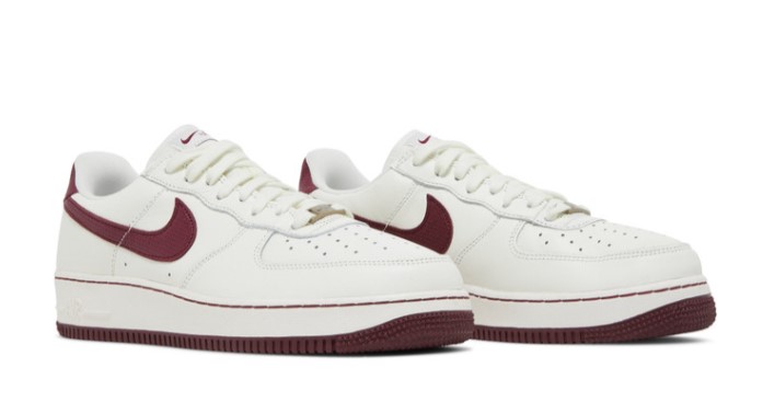 The Air Force 1 ’07 Craft ‘Dark Beetroot’ delivers an elevated interpretation of Bruce Kilgore’s original 1982 design. The low-top carries an off-white leather upper with contrasting hits of burgundy on the Swoosh and heel tab, both rendered in microperforated leather.