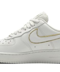 The Air Force 1 07 ESS Metallic Gold offers a bold and luxurious design with its metallic gold finish. The premium leather upper is enhanced with a gleaming gold color that provides a standout look. Traditional Air cushioning delivers superior comfort and support, while the rubber outsole ensures reliable traction. Ideal for those who appreciate eye-catching and glamorous footwear, the Metallic Gold edition is a versatile addition that makes a statement.