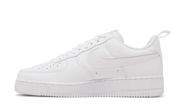 The Air Force 1 ’07 LV8 ‘Reflective Swoosh – White Dark Marina Blue’ brings a modern twist to the classic silhouette with its eye-catching reflective details. The upper is crafted from premium white leather, accented by a reflective Swoosh that catches the light for a striking effect. Dark marina blue details on the heel tab and midsole add contrast and style, making this sneaker a standout choice. Traditional Air cushioning ensures superior comfort and support, while the rubber outsole provides reliable traction. Perfect for those who appreciate classic style with a modern twist, the Reflective Swoosh edition is a versatile addition to any wardrobe.