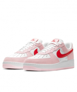 The Air Force 1 07 QS ‘Love Letter’ Valentine’s Day 2021 is a romantic and playful take on the classic sneaker, designed to celebrate love. The upper is crafted from a mix of soft pink and white leather, accented by heart-shaped perforations and unique embroidered details. A hidden message beneath the lace cover adds a personal touch, making these sneakers perfect for expressing affection. The traditional Air cushioning provides excellent comfort and support, while the rubber outsole ensures reliable traction. Ideal for Valentine’s Day or any occasion that calls for a touch of romance, the ‘Love Letter’ edition adds a whimsical flair to your sneaker collection.