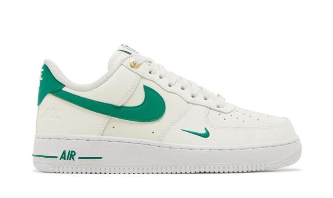 The Air Force 1 07 SE 40th Anniversary – Sail Malachite celebrates four decades of the iconic sneaker with a refined design and luxurious details. The upper is crafted from premium sail leather, accented by malachite green details on the Swoosh and heel tab. This elegant color combination adds a touch of sophistication to the classic silhouette. Unique anniversary branding and gold accents commemorate the milestone, making this edition a collector’s item. Traditional Air cushioning ensures superior comfort and support, while the rubber outsole provides reliable traction. Perfect for those who appreciate history and style, the 40th Anniversary – Sail Malachite edition is a standout choice for any sneaker collection.