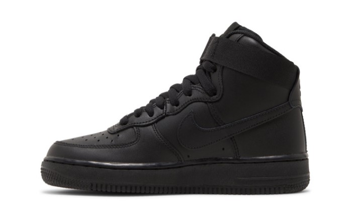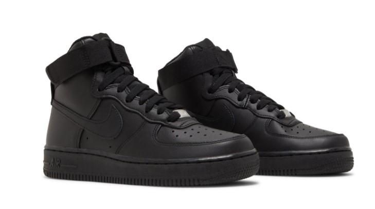 The Air Force 1 High ‘Triple Black’ offers a sleek and stealthy design with its all-black colorway. The upper is crafted from premium black leather, providing a clean and versatile look that pairs effortlessly with any outfit. The high-top design offers additional ankle support and style, while the adjustable strap ensures a secure fit. Traditional Air cushioning delivers superior comfort and support, making it ideal for all-day wear. The rubber outsole provides reliable traction and durability, making the Triple Black edition a versatile addition to any wardrobe.