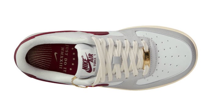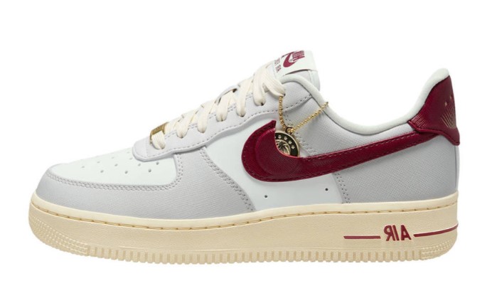 A spruced-up version of the traditional AF1, the Air Force 1 Low Gold Hangtag White Red is released as part of the celebration for the silhouette’s 40th anniversary.