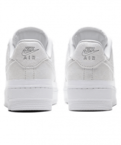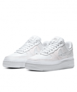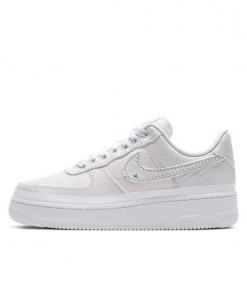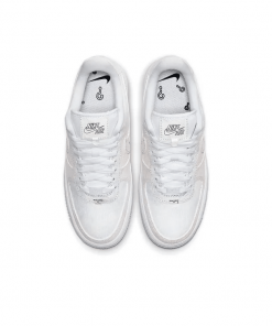 The womens Air Force 1 Low LX Reveal features subtle text atop the toe box that reads Tear Here, indicating that the white textile overlay that covers the upper is meant to be stripped away.