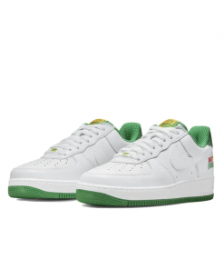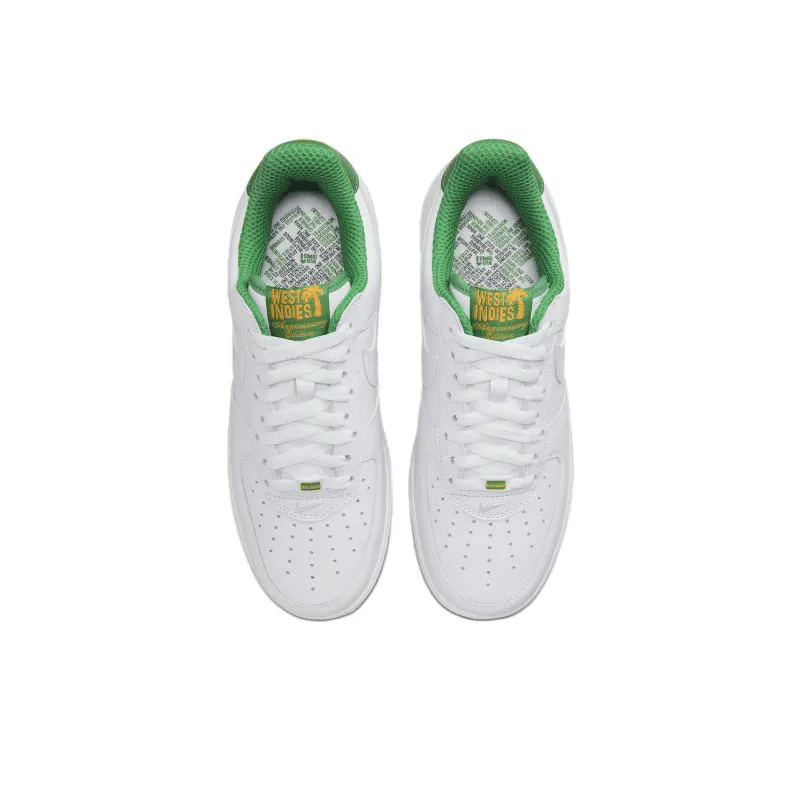 The Air Force 1 Low ‘West Indies’ 2022 celebrates Caribbean culture with its vibrant design and special details. The upper is crafted from premium white leather, accented by green and red details on the Swoosh and heel tab. The tongue features ‘West Indies’ branding, and the insole displays a map of the Caribbean, adding a unique cultural touch. Traditional Air cushioning ensures superior comfort and support, while the rubber outsole provides reliable traction. Ideal for those who appreciate cultural designs, the West Indies edition is a colorful addition to any sneaker collection.