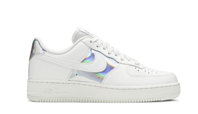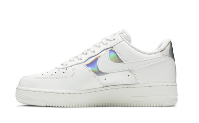 The Air Force 1 Low ‘White Iridescent’ offers a fresh and modern take on the classic silhouette with its unique design elements. The upper is crafted from premium white leather, featuring iridescent details on the Swoosh and heel tab that add a touch of style and individuality. This eye-catching design provides a touch of personality to the iconic sneaker, making it perfect for those who appreciate bold and innovative styles. Traditional Air cushioning ensures superior comfort and support, while the rubber outsole provides reliable traction. The White Iridescent edition is a standout choice for those who want to make a statement with their footwear.