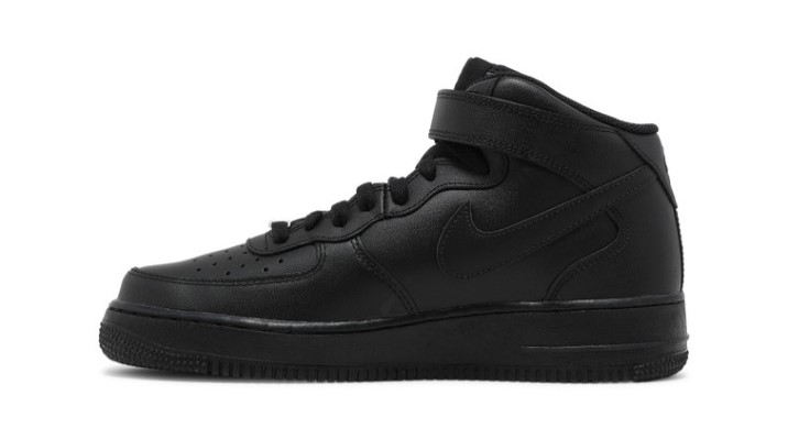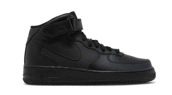 The Air Force 1 Mid ’07 ‘Triple Black’ offers a sleek and stealthy design with its all-black colorway. The upper is crafted from premium black leather, providing a clean and versatile look that pairs effortlessly with any outfit. The mid-cut design offers additional ankle support and style, while the adjustable strap ensures a secure fit. Traditional Air cushioning delivers superior comfort and support, making it ideal for all-day wear. The rubber outsole provides reliable traction and durability, making the Triple Black edition a versatile addition to any wardrobe.