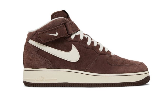 The Air Force 1 Mid ‘Chocolate’ offers a warm and earthy take on the classic silhouette with its rich colorway. The upper is crafted from premium chocolate brown leather, providing a rich and textured look that is perfect for fall and winter. The mid-cut design provides additional ankle support and style, while the adjustable strap ensures a secure fit. The traditional Air cushioning delivers superior comfort and support, making it ideal for all-day wear. The rubber outsole provides reliable traction and durability, making the Chocolate edition a versatile choice for those who appreciate classic style with a seasonal twist.