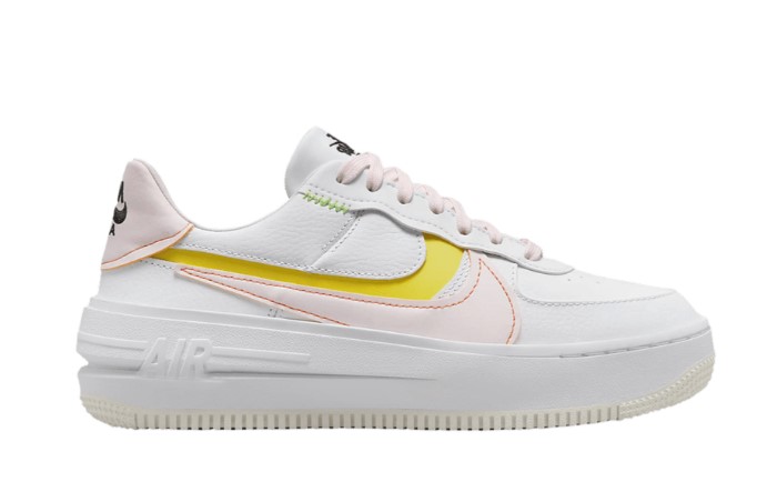 The Air Force 1 PLT.AF.ORM ‘White Pearl Pink’ offers a modern and elevated take on the classic silhouette with its platform sole and refined details. The upper is crafted from premium white leather, featuring pearl pink accents on the Swoosh and heel tab that add a touch of elegance and femininity. This fresh design incorporates a sculpted midsole, giving the sneaker a contemporary edge while maintaining the iconic Air Force 1 aesthetic. The platform sole provides added height and a bold look, while the traditional Air cushioning ensures superior comfort and support. Perfect for those who appreciate classic style with a modern twist, the White Pearl Pink edition is a versatile addition to any wardrobe.