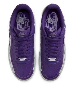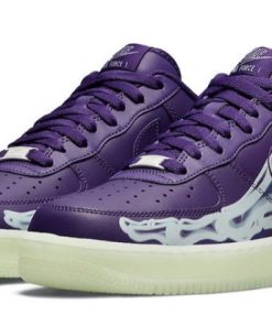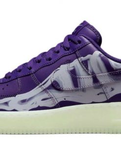 The Air Force 1 Purple Skeleton combines Halloween spirit with iconic sneaker design, featuring a bold and spooky skeleton graphic on the upper. The rich purple leather serves as a backdrop for the intricate skeleton design that runs along the sides, providing a unique and eye-catching look. This special edition sneaker includes glow-in-the-dark elements that make the skeleton design pop in low-light settings, adding a playful touch to the classic silhouette. Traditional Air cushioning ensures exceptional comfort and support, while the rubber outsole offers reliable traction. Ideal for those who enjoy making a statement with their footwear, the Purple Skeleton is a standout addition to any collection, perfect for Halloween and beyond.