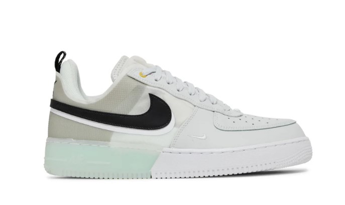 The Air Force 1 React ‘Grey Mint’ merges classic design with modern technology, offering a fresh take on the iconic sneaker. The upper is crafted from premium leather and mesh in a grey hue, accented by mint green details on the Swoosh and heel tab. The shoe features React foam cushioning integrated into the midsole, providing exceptional comfort and a responsive feel. The exaggerated design elements and contemporary branding add a touch of modernity to the iconic sneaker. The durable rubber outsole ensures reliable traction, making the Grey Mint edition a standout choice for those who appreciate both style and performance.