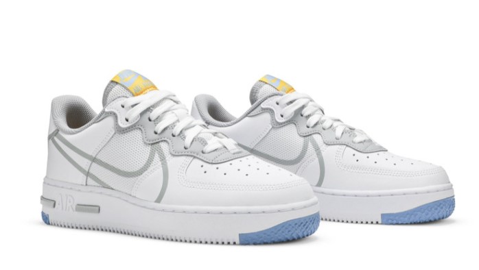 The Air Force 1 React ‘Smoke Grey Gold’ updates the sneaker icon with upgraded tech and contemporary style, including a wavy eyestay, double-layered heel tab and cropped printed Swoosh.