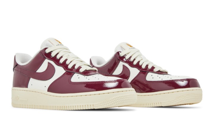 The womens Air Force 1 Roman Empire brings a high-gloss finish to the vintage hoops shoe originally released in 1982. The upper combines a white tumbled leather base with shiny patent leather overlays in Dark Beetroot.