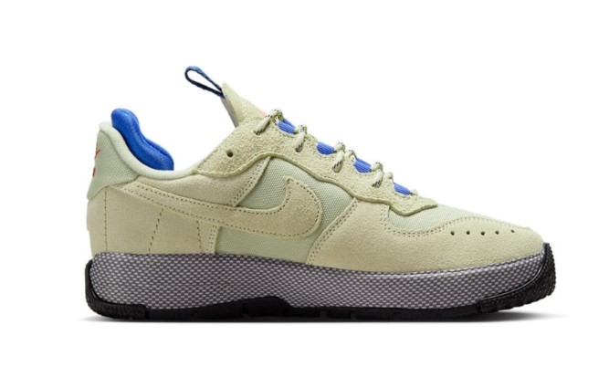 The Air Force 1 Wild Light Green/Blue reimagines the sneaker icon as an outdoor model, featuring a khaki-colored mesh upper with tonal suede overlays.