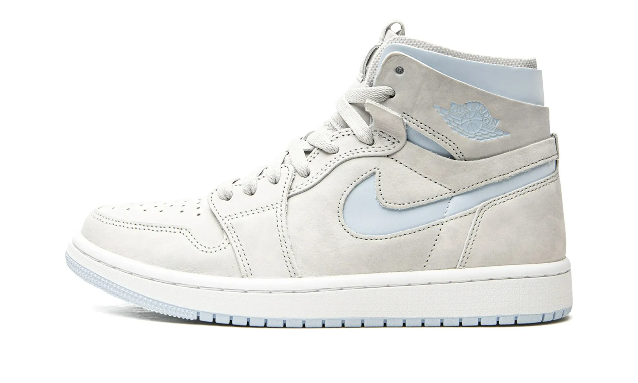 The Air Jordan 1 High Zoom Comfort ‘Cool Grey Light Blue’ blends classic Jordan design with modern comfort technology. Featuring a premium leather upper in Cool Grey with Light Blue accents, this sneaker offers a sleek and stylish appearance. The Zoom Air cushioning in the midsole ensures superior comfort and responsiveness, making it ideal for all-day wear. The high-top design is completed with a grey outsole and blue detailing, enhancing both style and performance. The ‘Cool Grey Light Blue’ edition combines traditional Jordan aesthetics with contemporary comfort features, making it a standout choice for those who appreciate both design and functionality.