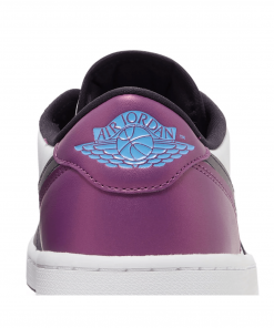 The Air Jordan 1 Low Golf NRG ‘Purple Smoke’ is a unique blend of style and functionality, designed specifically for the golf course. This sneaker takes the classic Air Jordan 1 Low silhouette and adapts it with golf-specific features, making it a perfect choice for both sneaker enthusiasts and golf aficionados. The “Purple Smoke” colorway is striking, with shades of deep purple and black dominating the upper. Crafted from premium leather, this sneaker ensures durability and a premium feel. The low-top design is paired with a modified outsole that provides excellent grip and stability on the green. The shoe’s midsole features the iconic Air-Sole unit, ensuring that every step is cushioned, whether you’re walking the fairway or strolling the streets. The ‘Purple Smoke’ is not just a golf shoe; it’s a statement piece that brings the heritage of the Jordan brand to a new arena.