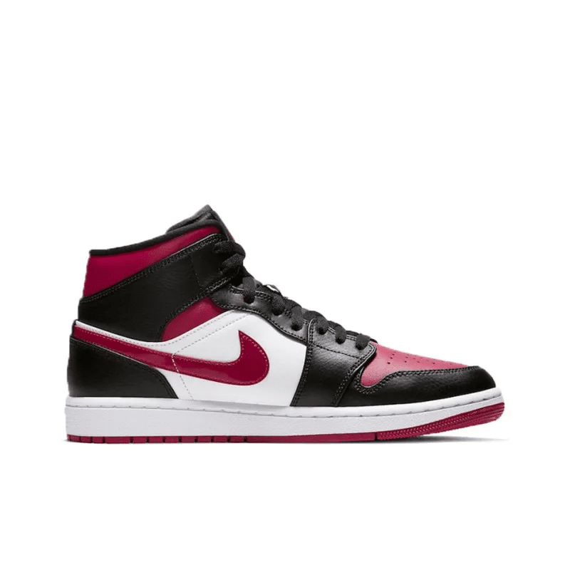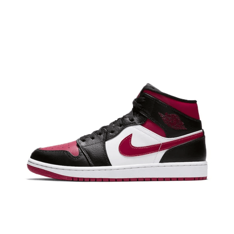 The Air Jordan 1 Mid ‘Noble Red’ features a premium leather upper in a deep, luxurious Noble Red color. The mid-top silhouette is complemented by contrasting white and black accents, with a white midsole and a black outsole. The ‘Noble Red’ edition stands out for its rich color and classic Jordan 1 design, making it a signature choice for those who appreciate a blend of elegance and style in their footwear.