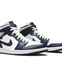 The Nike Air Jordan 1 Mid maintains the iconic look and heritage details of the 1985 original in a lower profile. Issued in August 2019, this editions leather upper is split up in Obsidian and white with Swooshes across the sides and signature Wings branding to the ankle.