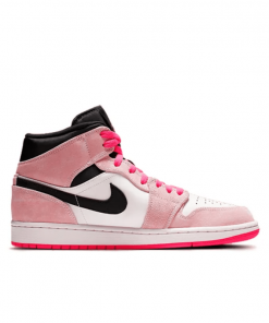 Updating the original in a rosy motif, the Air Jordan 1 Mid SE Crimson Tint comes with black-on-white body contrast, pink nubuck overlays and hot-pink laces and outsole.