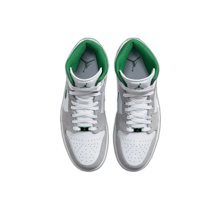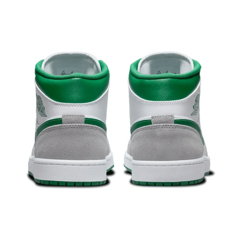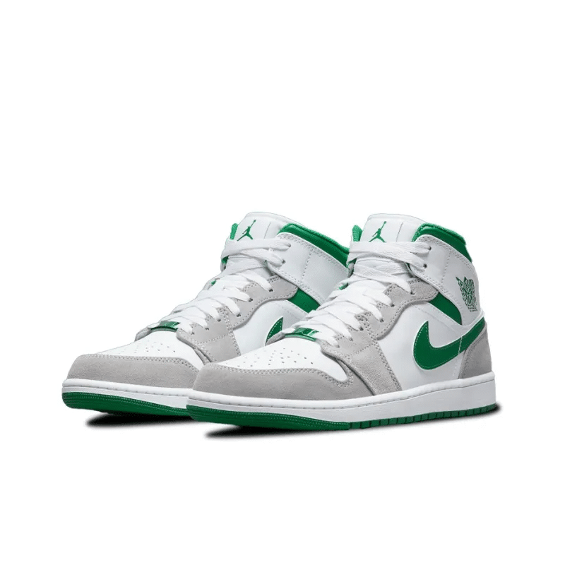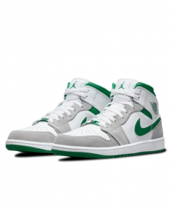 The Air Jordan 1 Mid SE ‘Grey Pine Green’ showcases lush accents on a classic silhouette modeled after the 1985 original. White leather is utilized on the upper, fortified with grey suede overlays and accented with a grassy green Swoosh.