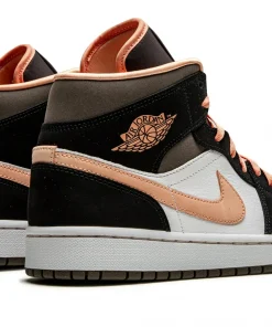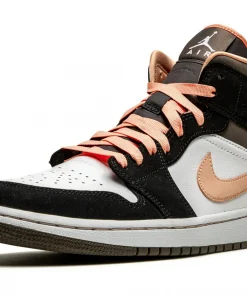 The Air Jordan 1 Mid SE ‘Peach Mocha’ features a unique colorway that blends soft peach and rich mocha tones. The sneaker’s premium leather upper ensures durability and comfort, while the mid-top design offers support and versatility. This model stands out for its distinctive color combination and high-quality construction, making it a signature piece in Jordan’s lineup.