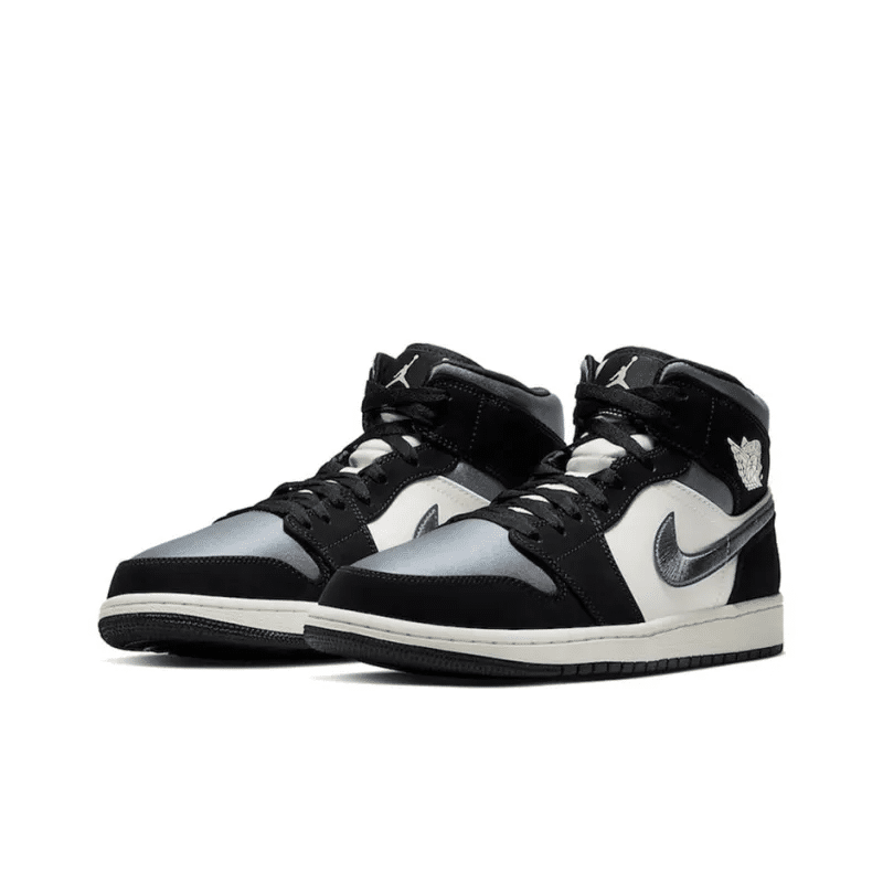 The Air Jordan 1 Mid SE ‘Satin Smoke Grey’ showcases the timeless appeal of the AJ1 silhouette, updated here with a neutral color scheme and nontraditional materials. The upper is constructed from a blend of white leather at the quarter panel and shiny grey satin at the toe box, collar and Nike Swoosh.