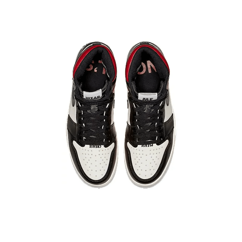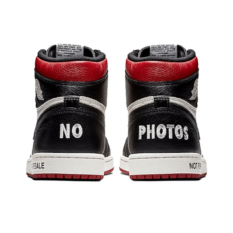 The Air Jordan 1 Retro High OG NRG ‘Not For Resale’ features not-so-hidden messages printed across the upper and midsole. They include ‘No Photos’ embroidered across the heel of the left and right shoe, ‘Wear Me’ across the tongues and ‘Please Crease’ stamped on each toe box.