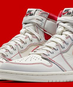 Instead of the usual two-tone color blocking, the Air Jordan 1 Retro High OG ‘Phantom’ makes use of contrast stitching in black and red to distinguish the high-top’s clean lines. The shoe’s all-leather upper is finished in Off-White Sail, accented by a padded collar and underlayer Swoosh in University Red.