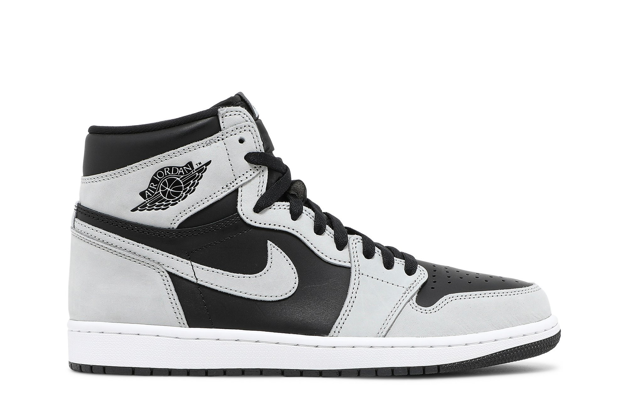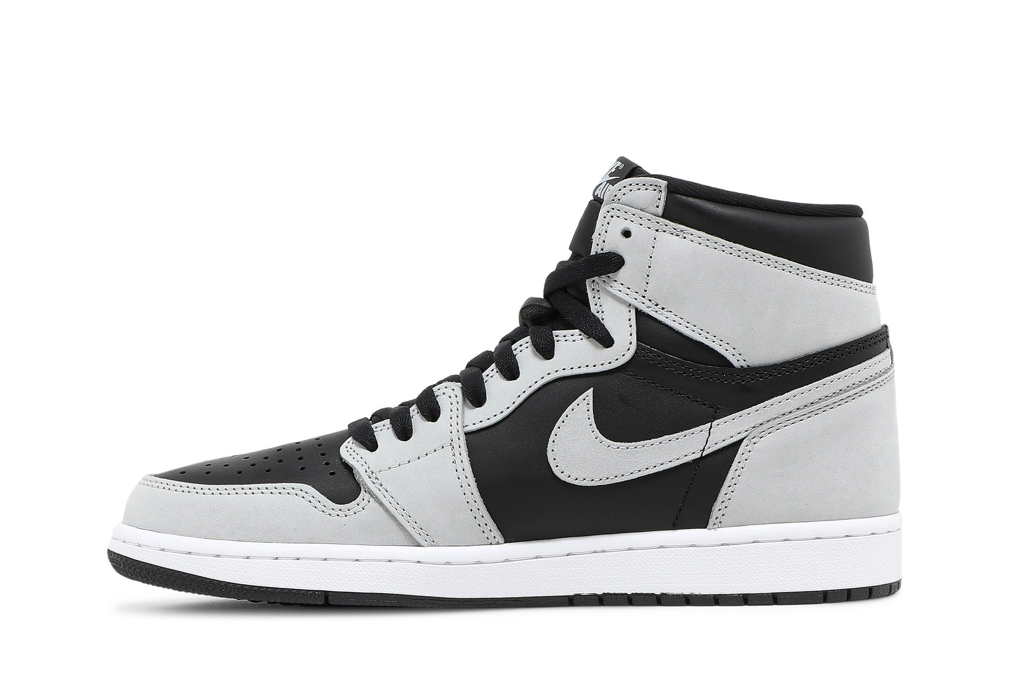As its moniker suggests, the Air Jordan 1 Retro High OG ‘Shadow 2.0’ utilizes the same neutral palette featured on the original Black/Grey colorway from 1985. This pair makes use of a black leather upper with grey suede overlays at the toe and heel.