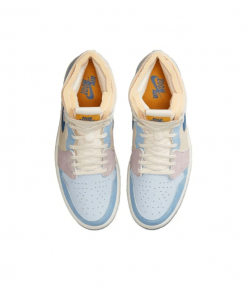 Vintage design meets modern technology in the Air Jordan 1 Zoom CMFT Washed Blue. Dressed in pale pastels, this fashionable shoe brings to mind sceneries of spring from the bright sky to the colourful blooms.