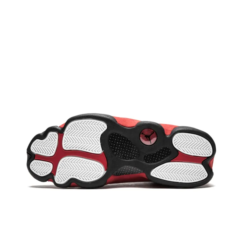 The Air Jordan 13 received a retro update in 2017 outfitted in its original color scheme. The Air Jordan 13 Retro Bred 2017 features a black leather upper with matching 3M reflective ballistic mesh overlays on the sidewall.