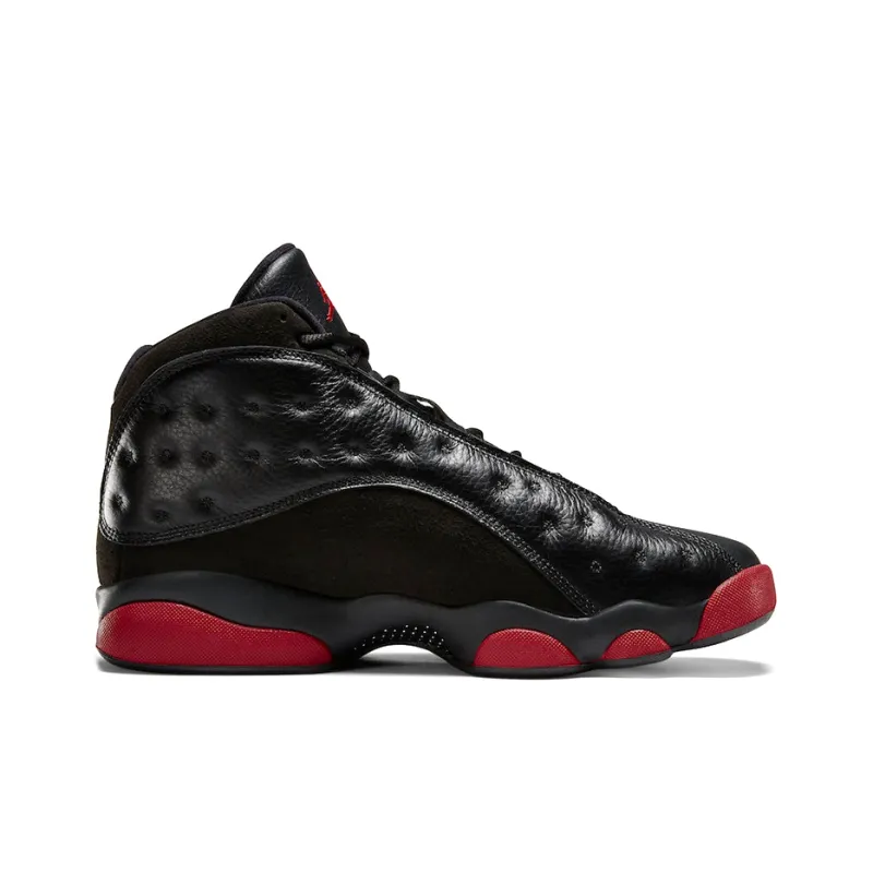 The Air Jordan 13 Retro ‘Dirty Bred’ features a unique design with its distressed black and red colorway, giving it a rugged and worn look. This model includes classic Jordan 13 elements such as the signature holographic eye and a durable outsole. The ‘Dirty Bred’ edition combines a gritty aesthetic with timeless style, making it a standout choice for collectors and fans. The distinctive look and high-quality materials ensure both style and comfort.