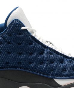The Air Jordan 13 Retro ‘Flint’ 2005 showcases a distinctive design with its deep blue and grey mesh upper, accented by navy suede. This model features classic Jordan 13 elements such as the signature holographic eye and a durable outsole. The ‘Flint’ 2005 edition stands out with its iconic colorway and high-quality materials, making it a coveted choice for collectors and enthusiasts. The refined design and premium construction ensure both style and comfort.