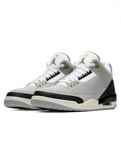 The Air Jordan 3 Retro ‘Chlorophyll’ showcases a distinctive green colorway with a blend of leather and suede. Inspired by the original design, this model features a refreshed look while retaining the essential elements that made the Jordan 3 iconic. Ideal for those who value both heritage and modernity.