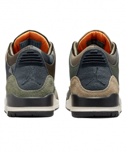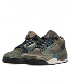 The Air Jordan 3 Retro ‘Patchwork’ updates the iconic model with refreshed materials and prints. A dark beige hue is executed on the canvas and textile upper, fortified with contrasting overlays in moss green and woodland camo. The segmented mudguard features a mix of beige herringbone twill and grey rain camo, while the shaggy suede heel overlay is rendered in olive green.