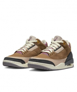 The Air Jordan 3 Retro SE ‘Winterized’ updates Tinker Hatfield’s original 1988 design with a revamped build that offers protection from the elements. The upper is constructed from water-resistant brown nubuck with a pink suede mudguard and purple ballistic mesh around the collar.