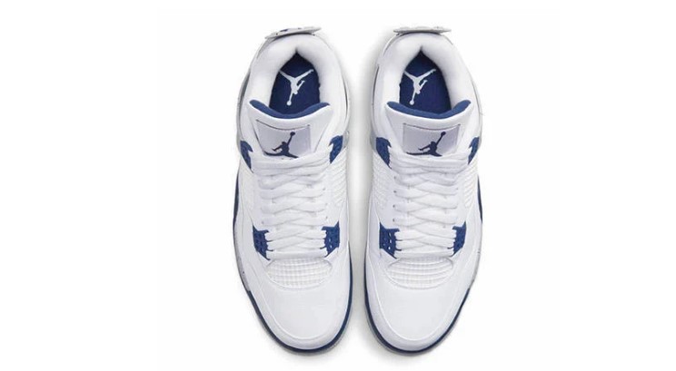 The Air Jordan 4 ‘Midnight Navy’ brings a fresh and modern twist to the classic silhouette, blending elegance with bold color contrasts. The upper is crafted from premium white leather, offering a smooth and clean base that highlights the shoe’s design elements. The defining feature of this sneaker is the ‘Midnight Navy’ accents, which are strategically placed on the eyelets, midsole, and branding to create a striking visual effect. These navy blue elements add depth and sophistication, making the sneaker versatile enough for both casual and formal settings. The grey accents on the heel tab and outsole further enhance the design, providing a balanced and cohesive look. The Air cushioning in the midsole ensures that the ‘Midnight Navy’ delivers comfort and support for all-day wear, while the rubber outsole provides excellent traction on various surfaces. This sneaker is perfect for those who appreciate refined colorways and modern updates on classic designs, making it a standout piece in any collection.