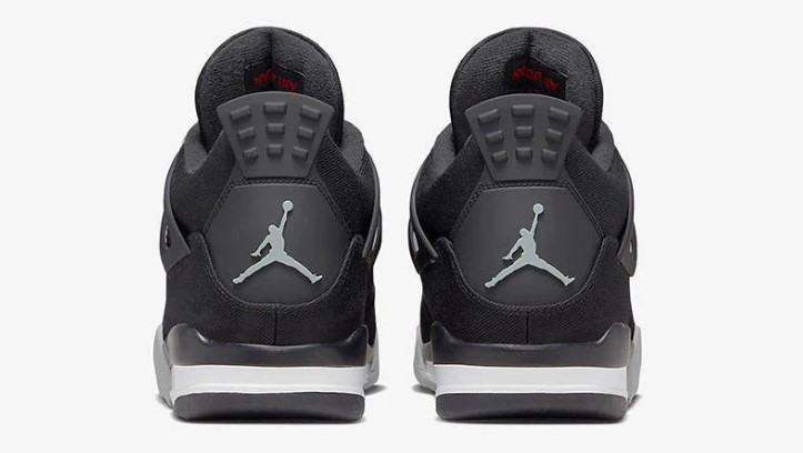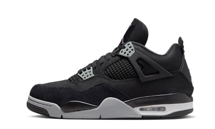 The Air Jordan 4 Retro ‘Black Canvas’ brings a rugged, utilitarian twist to the classic Jordan 4 silhouette. The upper is constructed from durable black canvas, giving the sneaker a tough, almost military-inspired aesthetic. This material choice not only enhances the shoe’s durability but also adds a textured, matte finish that sets it apart from more traditional leather models. The monochromatic black color scheme is complemented by subtle grey accents on the midsole and eyelets, which add depth and contrast without disrupting the shoe’s cohesive look. The signature Air cushioning in the sole ensures that the ‘Black Canvas’ is as comfortable as it is stylish, providing responsive support for all-day wear. The rubber outsole offers excellent traction, making this sneaker a practical choice for various terrains. The ‘Black Canvas’ is ideal for those who appreciate a versatile, durable sneaker that can handle both urban streets and outdoor adventures while maintaining a stylish edge.