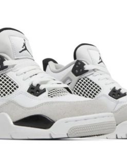 The Air Jordan 4 Retro GS ‘Military Black’ is a sleek and modern take on the classic Jordan 4 silhouette, designed specifically for grade school sizes. The upper is crafted from premium white leather, providing a clean and sophisticated base that’s perfect for showcasing the shoe’s design elements. The defining feature of this sneaker is the ‘Military Black’ accents, which are strategically placed on the eyelets, midsole, and branding to create a striking visual effect. These black elements add depth and sophistication, making the sneaker versatile enough for both casual and formal settings. The grey accents on the heel tab and outsole further enhance the design, providing a balanced and cohesive look. The Air cushioning in the midsole ensures that the ‘Military Black’ delivers comfort and support for all-day wear, while the rubber outsole provides excellent traction on various surfaces. This sneaker is perfect for young sneakerheads who appreciate refined colorways and modern updates on classic designs, making it a standout piece in any collection.