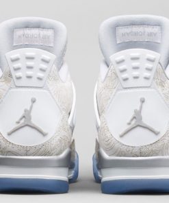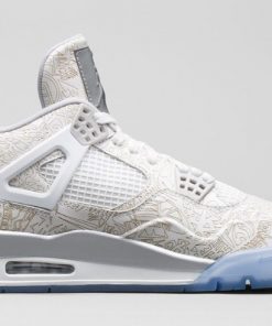 The Air Jordan 4 Retro ‘Laser’ is a special edition sneaker that showcases the Jordan brand’s commitment to craftsmanship and innovation. The white leather upper is adorned with laser-etched designs, creating a visually stunning and highly detailed pattern that tells the story of the Air Jordan legacy. These intricate designs cover the entire upper, from the toe box to the heel, giving the sneaker a unique, almost one-of-a-kind feel. Reflective silver accents on the tongue and heel tab add a touch of modernity and shine, ensuring that the ‘Laser’ stands out even in low light conditions. The translucent outsole not only enhances the shoe’s futuristic vibe but also provides a durable, non-slip surface that’s perfect for everyday wear. Inside, the Air cushioning system offers unparalleled comfort and support, making the ‘Laser’ as functional as it is fashionable. This sneaker is a must-have for collectors and fans of the Jordan brand, as it combines artistry with athletic performance in a way that few other models do.