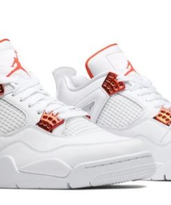 The Air Jordan 4 Retro ‘Orange Metallic’ is a bold and vibrant colorway that brings a fresh and dynamic look to the classic Jordan 4 silhouette. The sneaker features a white leather upper, providing a clean and versatile base that’s perfect for showcasing the shoe’s bold accents. The ‘Orange Metallic’ accents on the eyelets and Jumpman logo add a pop of color, giving the sneaker its distinctive look. These metallic orange elements catch the light beautifully, adding a touch of luxury to the overall design. The midsole and outsole are also rendered in white, maintaining the clean aesthetic and allowing the orange accents to stand out. Inside, the Air cushioning ensures that the ‘Orange Metallic’ offers the comfort and support needed for both on-court performance and off-court wear. The rubber outsole provides excellent traction, making this sneaker a practical choice for various conditions. The ‘Orange Metallic’ is perfect for those who appreciate bold yet simple designs, offering a fresh and dynamic addition to any sneaker collection.