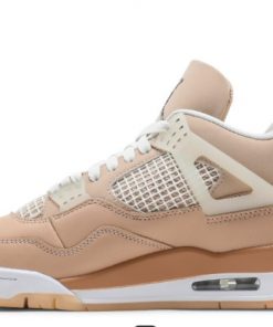 The Air Jordan 4 Retro ‘Shimmer’ is a standout sneaker that captures both luxury and urban aesthetics with a unique twist. Released in a shimmering beige palette, this model features a premium leather and suede upper that gives it a sophisticated and polished appearance. The shimmering, almost iridescent finish on the leather captures light beautifully, making the shoe a showstopper from every angle. This design is further accentuated by metallic accents on the eyelets, adding a touch of elegance and glamour. The translucent outsole, a modern and stylish addition, not only enhances the shoe’s visual appeal but also ensures that it maintains a contemporary feel. The shoe is equipped with Nike’s iconic Air cushioning system, providing unmatched comfort and support, making it ideal for long wear. The ‘Shimmer’ is a versatile sneaker that can transition seamlessly from casual streetwear to more dressed-up ensembles, making it a must-have for any sneaker enthusiast who values both style and comfort.