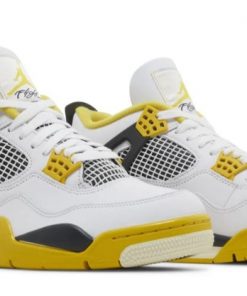 The Air Jordan 4 ‘Vivid Sulfur’ is a bright and energetic colorway that brings a fresh and dynamic look to the classic Jordan 4 silhouette. The sneaker features a white leather upper, providing a clean and versatile base that?s perfect for showcasing the shoe?s bold accents. The ‘Vivid Sulfur’ yellow accents on the midsole, eyelets, and lining add a pop of color, giving the sneaker its distinctive look. These vibrant yellow elements contrast beautifully with the white upper, creating a visually striking design that?s sure to turn heads. The Air cushioning in the midsole ensures that the ‘Vivid Sulfur’ offers the comfort and support needed for both on-court performance and off-court wear. The rubber outsole provides excellent traction, making this sneaker a practical choice for various conditions. The ‘Vivid Sulfur’ is perfect for those who appreciate bold and dynamic designs, offering a fresh and vibrant addition to any sneaker collection.