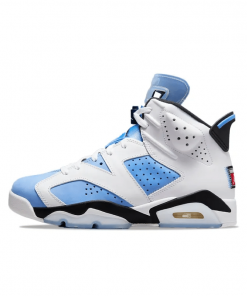 The Air Jordan 6 Retro ‘UNC Home’ features a clean and classic design with its Carolina Blue upper, inspired by the University of North Carolina. The shoe includes premium materials and classic Jordan 6 elements such as a visible Air-Sole unit and lace locks. The ‘UNC Home’ edition combines collegiate pride with timeless style, offering both sophistication and comfort. Ideal for fans of the university and collectors, this model stands out with its vibrant colorway and detailed craftsmanship.