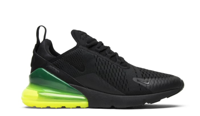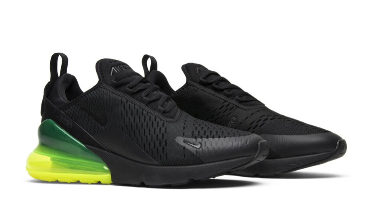 The Air Max 270 ‘Neon Green’ is a vibrant and energetic sneaker that stands out with its bold colorway and modern silhouette. The upper features a black mesh construction with striking neon green accents on the Swoosh and heel, creating a dynamic and eye-catching look. The large Max Air unit in the heel provides superior cushioning and support, ensuring a comfortable fit for all-day wear. The lightweight foam midsole enhances flexibility, while the rubber outsole delivers reliable traction. Ideal for those who want to make a statement with their footwear, the ‘Neon Green’ is a must-have for any sneaker enthusiast.
