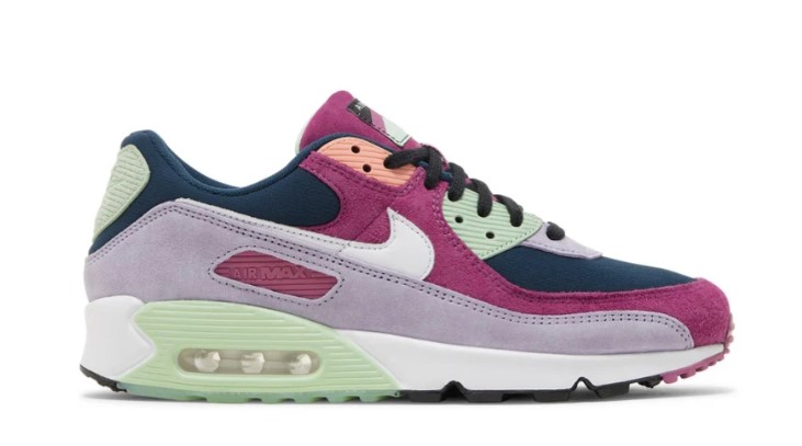 The 32-year-old Air Max 90 is the perfect silhouette for a multicoloured look with its combination of different materials.