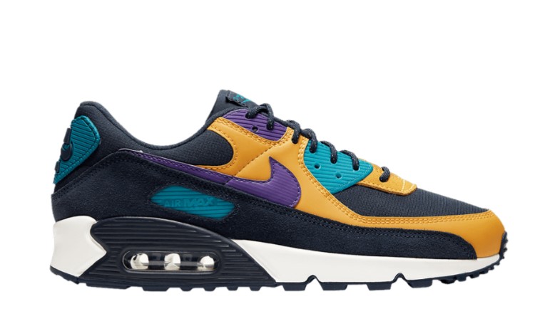 The Air Max 90 QS ‘ACG’ features details and colors inspired by ‘s long-running outdoor line. The upper blends a black textile base with orange leather overlays, a black suede mudguard and contrasting purple and teal accents.