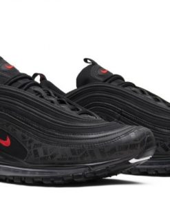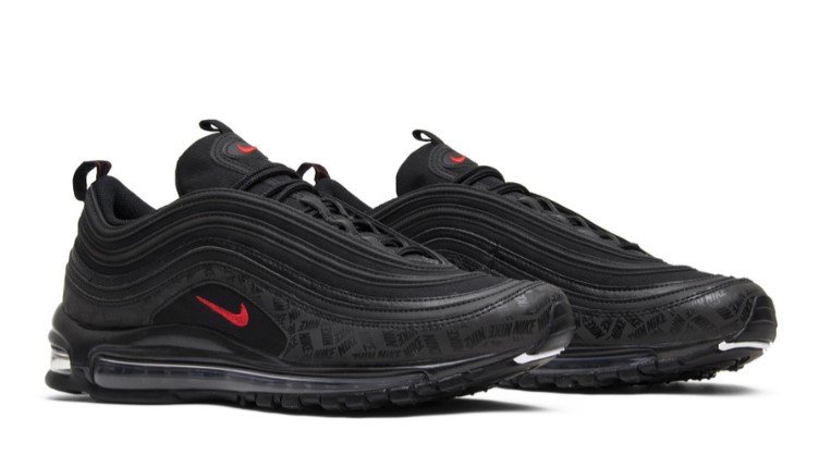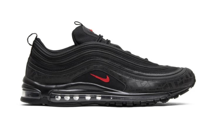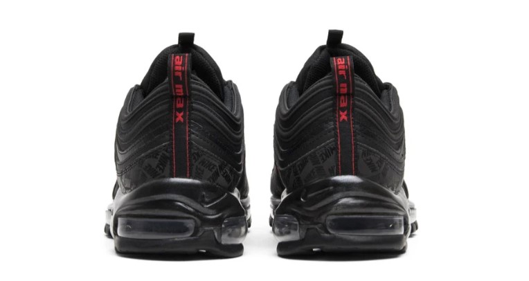 Released in July 2018, the Air Max 97 Black sneaker is revamped in an all-black colorway with repeating logos.