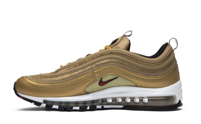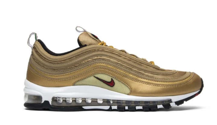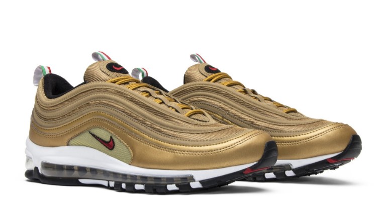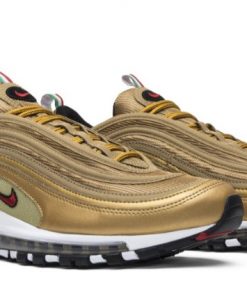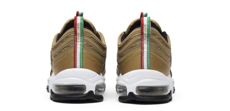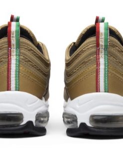 The Air Max 97 Italy Gold pays homage to Italian fashion and style with its luxurious design and color palette. The upper features a shimmering gold colorway with reflective detailing, complemented by green and red accents inspired by the Italian flag. Constructed from premium materials, this sneaker offers both style and durability. The full-length Air Max unit provides exceptional comfort and cushioning, making it ideal for all-day wear. With its standout colorway and elegant design, the Italy Gold is a must-have for sneaker enthusiasts who appreciate style and culture.