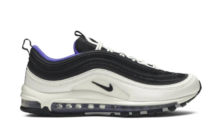 The Air Max 97 Persian Violet offers a fresh and stylish design with its unique color palette and premium materials. The upper features a combination of mesh and synthetic overlays in a predominantly white base, accented by persian violet and black details. This striking color combination adds a touch of elegance to the iconic silhouette, making it a versatile choice for any wardrobe. The full-length Air Max unit provides superior comfort and cushioning, while the rubber outsole ensures reliable traction and durability. Perfect for those who appreciate a blend of style and functionality, the Persian Violet is a standout addition to any sneaker collection.